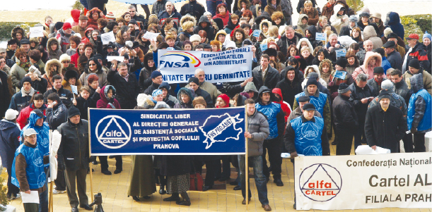 Ieri dimineata, aproximativ 100 de sindicalisti, membri ai federatiilor care sunt reunite sub stindardul Cartelului Alfa – filiala Prahova, au protestat, in fata Prefecturii, fata de recentele masuri luate de catre guvern. Masuri care, prin vocea presedintelui acestuia – Iosif Mihailescu – “sunt de natura sa duca la ruina poporul roman”. Pe cale de consecinta, s-a strigat “Huo” !