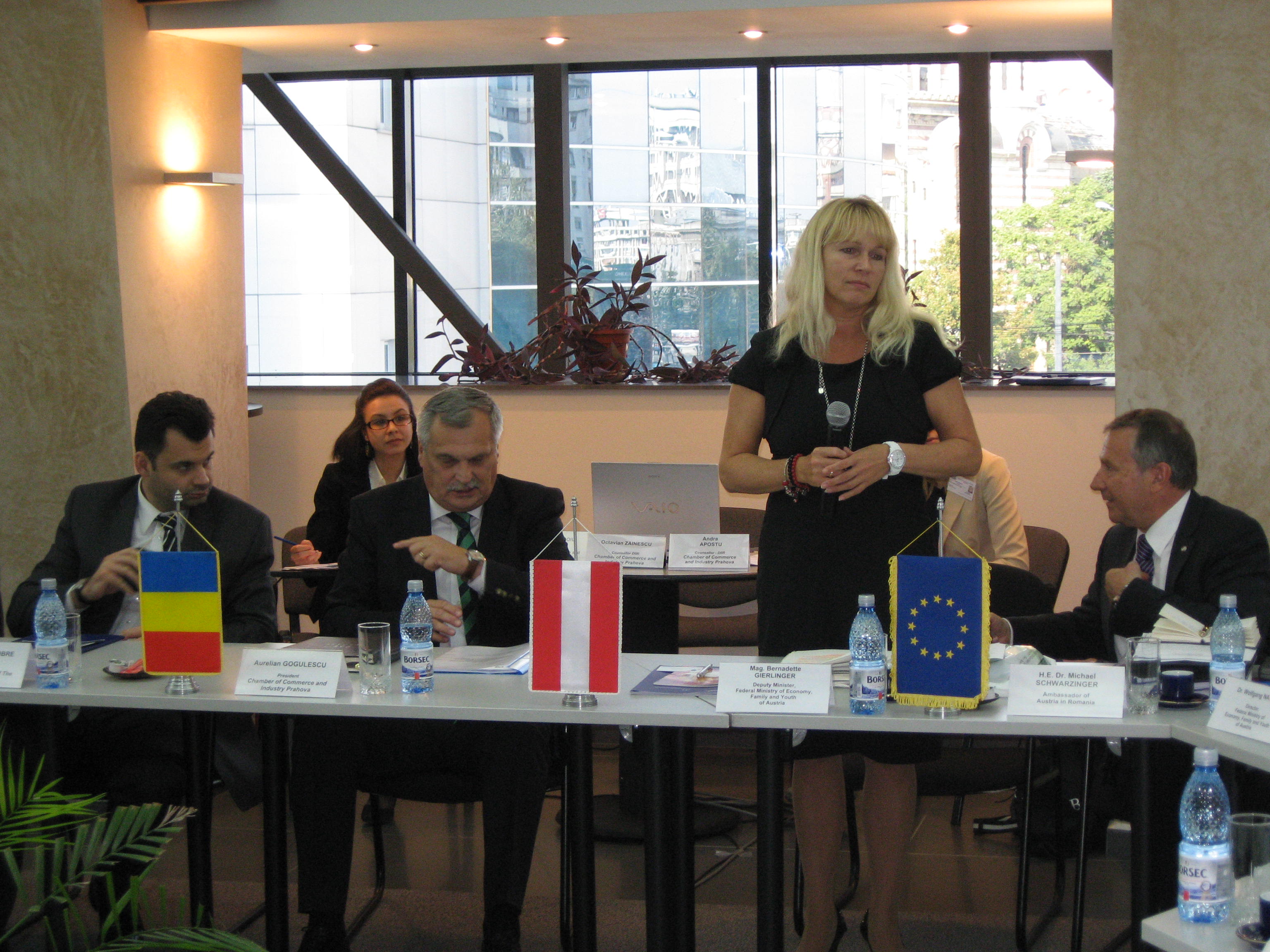 Imbucurator este si faptul ca, dintre firmele mentionate, 2.251 sunt societati cu capital social strain sau mixt, iar 67 dintre acestea din urma ( circa 3 la suta) au actionariat austriac. De altfel, Austria este a doua tara dupa volumul investitiilor straine in Romania. Probabil acesta este si motivul pentru care aflata, zilele trecute, in Romania, ministrul adjunct al Ministerului Federal al Economiei, Familiei si Tineretului din Austria – doamna Bernadette Marianne Gierlinger a dorit sa faca o scurta vizita si in Prahova. La intalnirea de la sediul CCI Prahova (vezi imaginea alaturata) cu reprezentantii unor cunoscute companii locale (OMV Petrom, IPIP Ploiesti, DIBO Industrial Park, Petrostar SA Ploiesti, Hydac SRL etc), ministrul austriac si-a manifestat interesul deosebit fata de intensificarea colaborarii reciproc avantajoase dintre cele doua tari, cu prioritate in domeniul industriei, al agriculturii, al turismului si in cel al protectiei mediului, unde „exista suficient potential nevalorificat de catre oamenii de afaceri”.