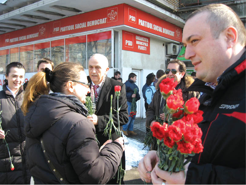 Ieri, cu bratele incarcate de garoafe rosii, reprezentanti ai Filialei Prahova a USL au pastrat traditia de a oferi, de Martisor, flori doamnelor si domnisoarelor. Mircea Cosma, presedintele Organizatiei Prahova a PSD, senatorul Iulian Badescu, consilieri locali, dar si alti reprezentanti ai Filialei Prahova a USL au oferit prahovencelor care s-au aflat, in jurul orelor 14.00, in centrul Ploiestiului, cate o floare, alaturi de urarea de a avea sanatate, clipe mai senine dar si o “primavara frumoasa!”. Actiunea reprezentantilor opozitiei de a oferi flori doamnelor si domnisoarelor va continua pana pe 8 Martie, de “Ziua femeii”, actiuni similare fiind organizate si de catre celelalte formatiuni politice de la nivel de judet.