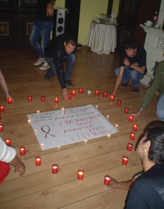 ,,Astazi (n.n. – ieri) este una dintre zilele saptamanii nationale a voluntariatului. Fiindca in aceasta saptamana este si „Ziua Internationala a Lumanarilor Aprinse” ne-am gandit ca este oportun sa ne amintim si de cei care au plecat dintre noi, in mod special cei care erau infestati cu HIV/SIDA. Nu vrem sa creada ca i-am dat uitarii. Unii nu au nici sase luni de la deces’’, ne-a declarat Iolanda Gheorghiu, directorul executiv al Asociatiei Noi si Ceilalti, filiala Prahova. Potrivit acesteia, la nivelul judetului Prahova sunt mai bine de 300 de persoane seropozitive, iar in cadrul asociatiei amintite exista 43 de membri cu varste cuprinse intre cinci si 35 de ani, ultimii trei fiind inscrisi de curand, respectiv o mama impreuna cu copilul si un tanar de peste 20 de ani.