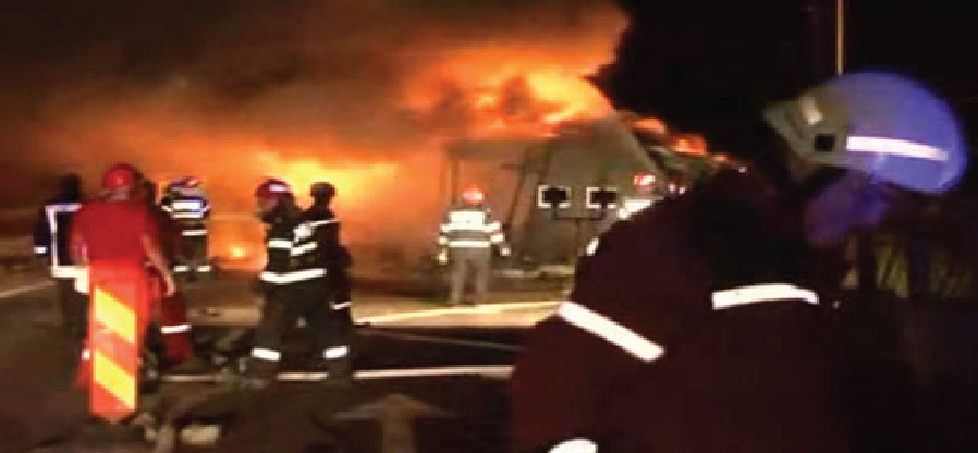 Dupa cum ne-a precizat purtatorul de cuvant al Inspectoratului pentru Situatii de Urgenta (ISU) Prahova, plutonier Raluca Vasiloaie, “ in momentul impactului cu parapetul, s-a produs un scurtcircuit, in urma caruia autotrenul a luat foc. La locul incidentului s-au deplasat trei autospeciale cu apa si spuma, iar pompierii au avut nevoie de aproximativ o ora pentru stingerea incendiului. Interventia a fost ingreunata si de natura materialelor transportate – in mod special hartie pentru imprimante de calculator – incarcatura cantarind aproximativ 10 tone, iar masina a ars aproape in totalitate”.