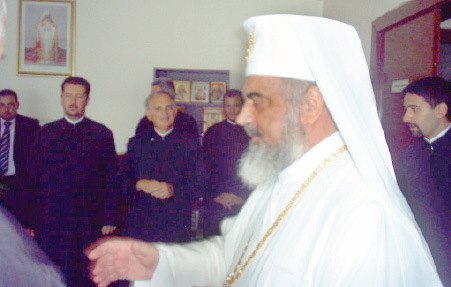 Ieri dimineata, in jurul orei 11.00, Patriarhul Bisericii Ortodoxe Romane, P.F. Daniel, a facut o vizita de lucru la Protoieria Campina. Este pentru prima data cand Prea Fericitul a poposit la Campina de cand a fost ales, de catre Sfantul Sinod, pastor al BOR. Patriarhul a sosit in municipiul campinean venind de la Busteni, unde, zilele trecute, inconjurat de un sobor de preoti si diaconi, a sfintit paraclisul din clopotnita Manastirii Caraiman, precum si Centrul social-pastoral Sfanta Cruce al Manastirii Caraiman. Preafericitul Parinte Patriarh Daniel si-a aniversat, pe 22 iulie 2012, ziua de nastere. In acea zi, Intaistatatorul Bisericii Ortodoxe Romane a implinit 61 de ani de viata, prilej cu care a oficiat Sfanta Liturghie la Manastirea „Inaltarea Sfintei Cruci–Caraiman”, din Busteni. La sosirea la Protoieria Campina, Patriarhul a fost intampinat de parintele protoiereu Costica Dumitru, care i-a adresat, in numele tuturor preotilor din protoierie, un calduros bun-venit si toate urarile cuvenite. In holul cel mare al protoieriei, preotii adunati i-au cantat un imn religios, in care i-au urat “La multi ani”, cu multa sanatate si impliniri in fruntea BOR, oferindu-i un cos cu 61 de trandafiri, simbolizand varsta Prea Fericitului. Multumindu-le pentru urari, plin de condescendenta, Patriarhul Daniel s-a aratat interesat sa afle daca preotii prezenti sunt cei care nu au apucat sa plece in concediu, dar parintele protoiereu Costica l-a asigurat ca, in ciuda faptului ca unii preoti sunt plecati in concediu, s-au luat toate masurile ca sa se oficieze sfanta liturghie la toate bisericile din Protoieria Campina, una dintre cele mai importante din judetul Prahova. Dupa ce a vazut toate incaperile protoieriei, Patriarhul i-a chemat la ceas de taina pe preotii prezenti. Intalnirea a durat circa 30 de minute. La sfarsitul acesteia, PF Daniel a plecat, nu inainte de a-i binecuvanta pe cei prezenti si pe credinciosii care asteptau smeriti sa-l vada la poarta Protoieriei Campina.