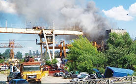 Ieri după-amiază, în jurul orei 15.00, un violent incendiu a cuprins un depozit de materiale reciclabile (mase plastice, cauciucuri etc), amplasat la circa 100 de metri de SC Lukoil Ploiești, norii negri de fum fiind vizibili de la câțiva kilometri distanță.
