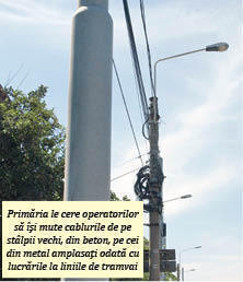 Primăria Ploieşti a dat, zilele trecute, un ultimatum – care expiră astăzi – tuturor societăţilor care deţin cabluri aeriene pe traseul liniilor de tramvai de pe Bulevardul Republicii, pe tronsonul cuprins între intersecţia cu Şoseaua Nordului şi cea cu strada Văleni. Autorităţile locale le-au solicitat operatorilor de internet, telefonie şi TV să îndepărteze cablurile de pe stâlpii vechi şi să le prindă de stâlpii nou amplasaţi în timpul lucrărilor de modernizare.