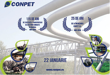 Celebrăm împreună momentul istoric în care s-a transportat prin conductă prima picătură de petrol românesc, respectiv anul înfiinţării primei societăţi comerciale pe acţiuni cu activitate în domeniul petrolier – CONPET S.A.