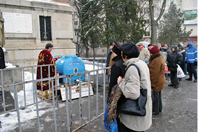 La Catedrala “Sfântul Ioan Botezătorul” din Ploiești au venit ieri sute de ploieșteni pentru a lua măcar un litru din apa sfințită în timpul slujbei speciale de Bobotează – sărbătoare ce marchează botezul Mântuitorului Iisus Hristos în apa Iordanului de către Sfântul Ioan Botezătorul. Sărbătoarea se mai numește și Epifania sau Teofania, adică Arătarea Domnului, pentru că în această zi Mântuitorul a ieșit pentru prima dată în lume, fiind mărturisit ca Mesia. Fiind una dintre cele mai mari evenimente religioase creștine, Catedrala ploieșteană a fost aproape neîncăpătoare pentru cei care au dorit să participe la slujba religioasă, în cursul dimineții. În jurul orei 11.00, pe treptele din fața Catedralei, preoții au săvârșit slujba de sfințire a apei, chemând asupra ei puterea Duhului Sfânt. Momentul de sfințire a apei a fost așteptat atât de cele câteva zeci de persoane care participaseră la slujba de dimineață, cât și de sutele de ploieșteni așezați la cozi pe platoul din fața Catedralei Sfântul Ioan, unii dintre ei așteptând încă de la ora 9.30. Atât preoții, cât și jandarmii au făcut apel la cetățeni să nu se înghesuie, deoarece este apă sfinţită destulă. Mulţi s-au conformat, cu excepția câtorva persoane care au încercat să sară peste rând și a unei femei care, înainte de a fi deschise robinetele, a băgat mâna direct în rezervor pentru a lua câteva picături de apă, sub privirile stupefiate ale celorlalți. Aproximativ 50 de jandarmi din cadrul Grupării de Jandarmi Mobile „Matei Basarab” Ploieşti au asigurat protecţia participanţilor, ordinea şi liniştea publice, la manifestările religioase de ieri atât la Catedrala „Sfântul Ioan“ din municipiul Ploieşti, cât şi la Mânăstirea Ghighiu din Bărcănești, unde se știe că prahovenii vin în număr foarte mare. Pentru a păstra ordinea în jurul recipientelor cu agheasmă, au fost montate garduri de protecţie, iar accesul enoriaşilor în interior, pentru a lua apă sfinţită, s-a făcut prin culoare special amenajate. Credincioşii care vor să păstreze tradiția beau agheasma mare vreme de opt zile, începând din ziua Bobotezei şi până în ziua de odovanie a praznicului (14 ianuarie). După data de 14 ianuarie, agheasma mare se ia numai cu post şi cu spovedanie, înainte de anfura, cu binecuvântarea preotului duhovnic. Cu agheasma mare, creștinii stropesc grădina, casa, curtea, vitele, ogoarele şi livezile, spre a fi păzite de lucrările necurate ale diavolului și beau din ea dacă au necazuri și boli, încredințați că îi va ajuta.