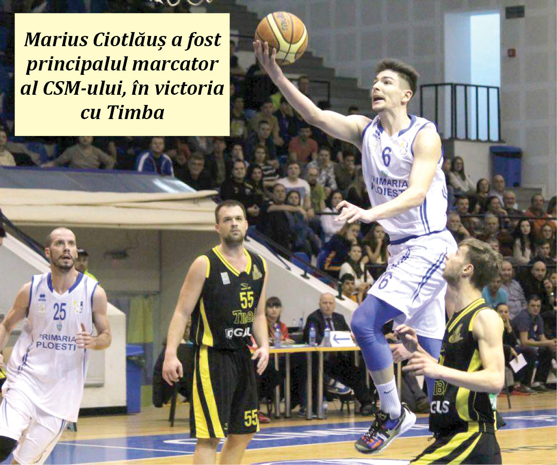 Baschetbaliştii de la CSM Ploieşti au trăit periculos, duminică seară, în „Olimpia”, împotriva Timbei Timişoara, dar au reuşit, în cele din urmă, să o scoată la capăt şi să-şi mulţumească fanii, printr-o lecţie de perseverenţă şi efort colectiv. După un început catastrofal, cu doar două reuşite din acţiune în primele zece minute, băieţii lui Eugen Ilie s-au trezit la timp pentru a aşeza lucrurile în ordine şi a rămâne singurii din faza semifinală cu punctaj maxim după trei partide.