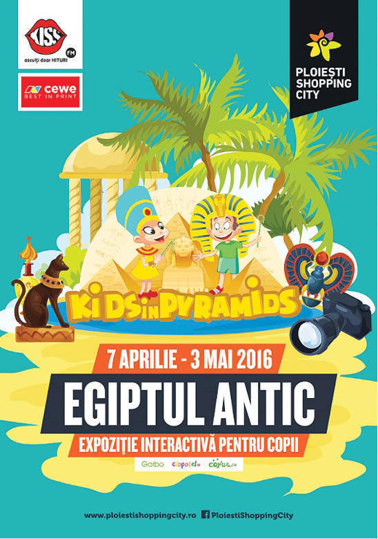 Începând de astăzi şi până pe 3 mai, Centrul comercial Ploiești Shopping City găzduieşte expoziţia „Egiptul Antic”, dedicată copiilor cu vârste cuprinse între 5 și 12 ani și aflată prima oară în Prahova, în cadrul unui tur național. În fiecare zi, în intervalul orar 12:00 – 20:00, cei mici sunt așteptați să participe la un curs interactiv de aproximativ 45 de minute, unde pot afla informaţii esenţiale despre una dintre cele mai importante civilizaţii din epoca antică, prin intermediul jocurilor.