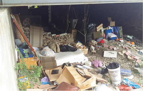Buzoianul îşi construise un adevărat adăpost sub podul respectiv, însă adunase şi o grămadă de gunoaie, resturi din materiale de construcţii, toate acestea fiind depozitate lângă culcuşul pe care bărbatul şi-l făcuse. În afara mirosurilor de nesuportat emanate în căldura sufocantă de gunoaiele strânse sub pod, locul devenise şi un adevărat rai pentru şobolani!