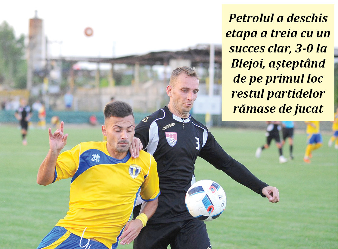 Runda a treia din primul eşalon judeţean programează, astăzi şi mâine, meciurile rămase de disputat, după ce Petrolul a deschis etapa, marţi, cu un scor de neprezentare pe terenul celor de la CS Blejoi.