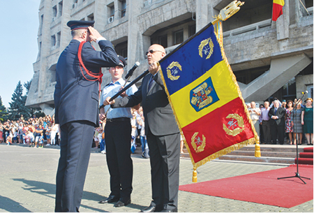 Intonarea Imnului Naţional al României a conferit momentului doza de emoţie necesară unui astfel de eveniment. A urmat momentul de linişte, când subsecretarul de stat Raed Arafat a înmânat steagul comandantului ISU „Şerban Cantacuzino” Prahova, locotenent-colonel Mihai Drăgan. Acesta, în semn de respect, a îngenuncheat şi a sărutat flamura. Apoi, din sute de piepturi ale pompierilor aliniaţi a răsunat „Ura !”, „Ura!”, „Ura !”.