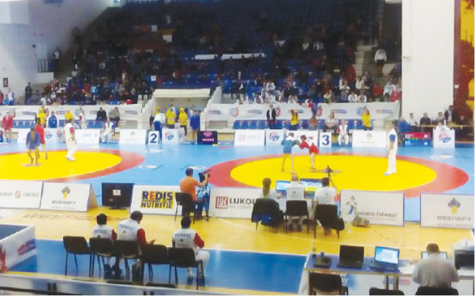Campionatul Mondial de Sambo pentru tineret şi juniori (sportivi între 17 şi 20 de ani) a început de ieri, la Sala Sporturilor „Olimpia”, şi va continua, astăzi şi mâine, între orele 10.00 şi 19.00. Dimineaţa, sunt programate meciurile din fazele preliminare, iar seara – finalele competiţiei, Federaţia Română de Sambo reuşind să „amenajeze” ca de sărbătoare incinta sălii.