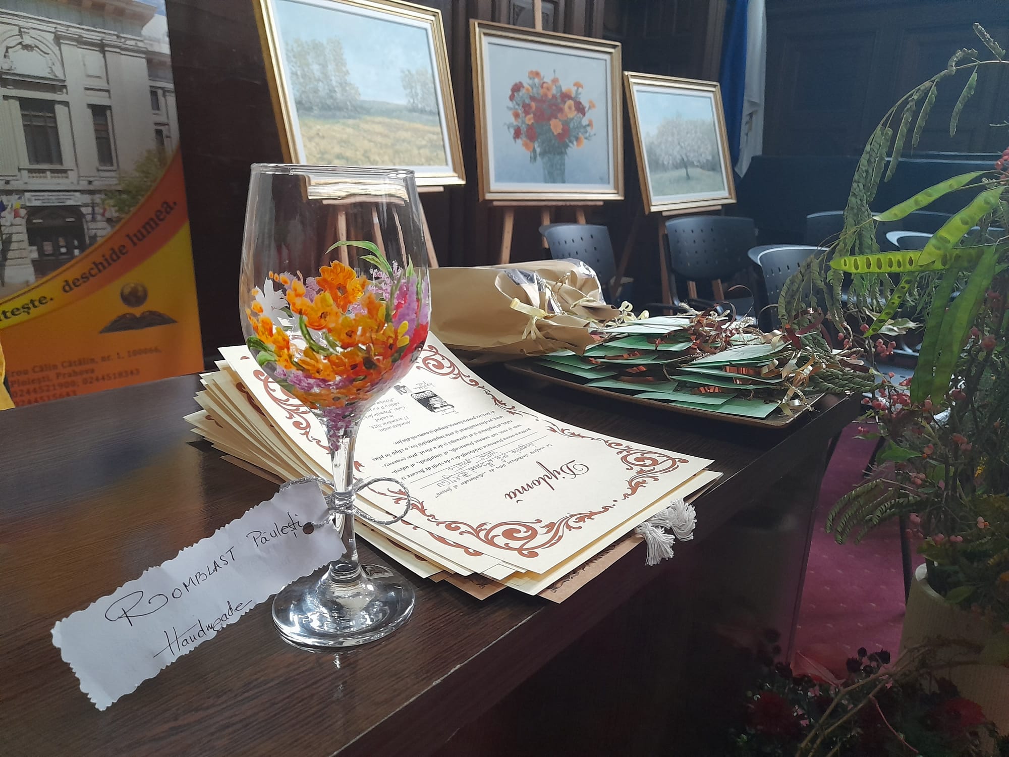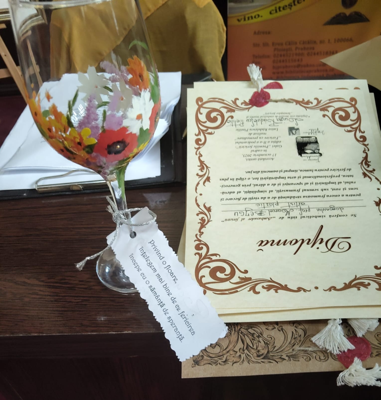 Purtătoare ale aceluiași  simbolic sigiliu de vechi înscris, dar mai ales ale marii mele recunoștințe,  am fost onorată să  înmânez câteva diplome ”în semn al alesei și sincerei   gratitudini pentru frumoasa susținere pe care am primit-o astfel încât dialogurile de la inimă la inimă ale podcastului  <<Fericire cu premeditare>>  să-și facă auzite rostirea și sufletul”, însoțite de asemenea de semințele și florile fericirii , acestea revenind :  doamnei Martha Maria Mocanu-director general al firmei BES România, pentru  suportul acordat  începerii acestui proiect de suflet, domnului Claudius Dociu-   fondator și director al postului de televiziune  DADA TV , care găzduiește dialogurile  despre fericire, doamnei Mihaela Radu- director al Bibliotecii Județene ”Nicolae Iorga”, care mi-a  fost aproape în organizarea celor două ediții ale Galei ”Premiilor Fericirii” și jurnalistei  Nicoleta Dumitrescu- ”martoră” de suflet a emoțiilor și mărturisirilor cu care plec și mă întorc  în redacție de la fiecare înregistrare a unui nou episod al podcastului.