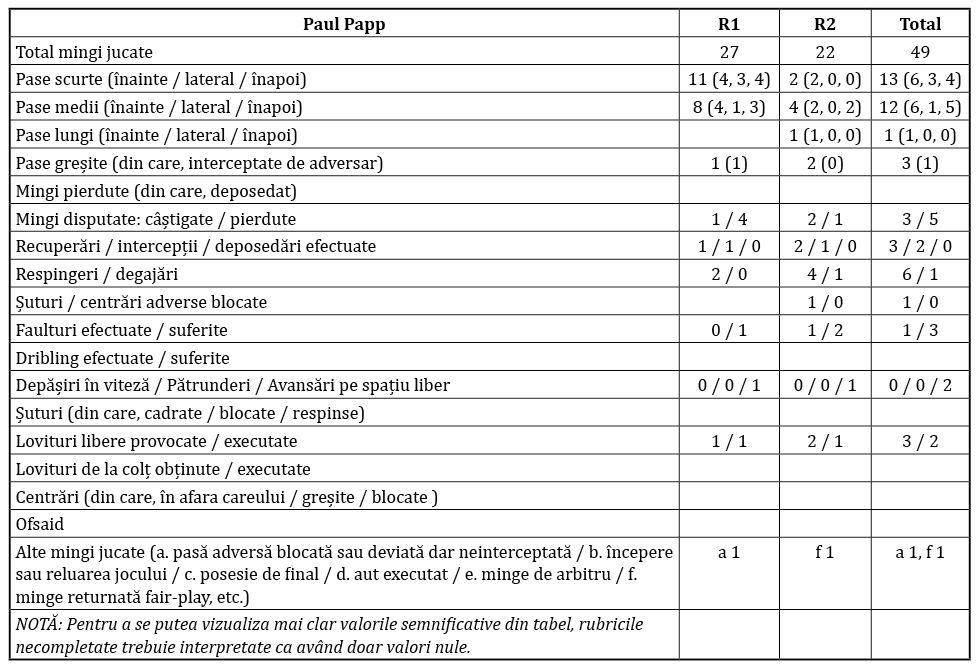S-ar părea că Papp a realizat un joc dacă nu ideal, măcar aproape de ideal. De altfel și paranteza de mai sus – „foarte”, cu referire la evoluția sa – sugerează că nu totul a fost perfect. Desigur, câteva poziționări mai departe de adversar pot fi trecute cu vederea atâta vreme cât atacul advers nu s-a putut dezvolta. Hai să îngăduim că și primele două din cele trei pase greșite le-am putea clasa, chiar dacă puțin forțat, în aceeași categorie, a trecutului cu vederea. Dar, nu se putea să nu apară și excepția. Cine ce a înțeles din acțiunile pe care Papp le-a înfăptuit în apropierea miezului primului mitan? Cum a putut face Papp un asemenea atac la Slimani încât algerianul să treacă extrem de ușor, acțiune petrecută în zonă centrală, la mijlocul terenului petrolist (min. 19)? Bun, să spunem că Slimani are un dribling senzațional. Dar cum a ajuns Papp al doilea, în spatele lui Slimani, ceferistul fiind cu fața spre minge la lovitura de cap trimisă peste bara transversală din apropierea careului mic (min. 20)? Doar imprecizia loviturii algerianului l-a scutit pe portarul Bălbărău să nu caute mingea prin plasa propriei porți.