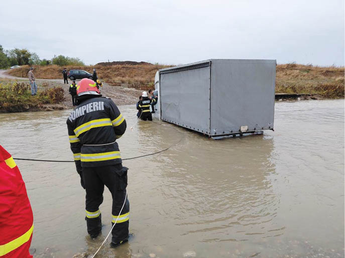 Ieri, pompierii militari din cadrul Detașamentului 1 Ploiești au intervenit cu o autospecială de stingere, o barcă gonflabilă, o autospecială de primă intervenţie şi comandă, precum şi un echipaj SMURD pentru gestionarea unei situaţii critice: un autovehicul rămas blocat în albia râului Teleajen, în zona comunei Berceni, satul Moara Nouă.