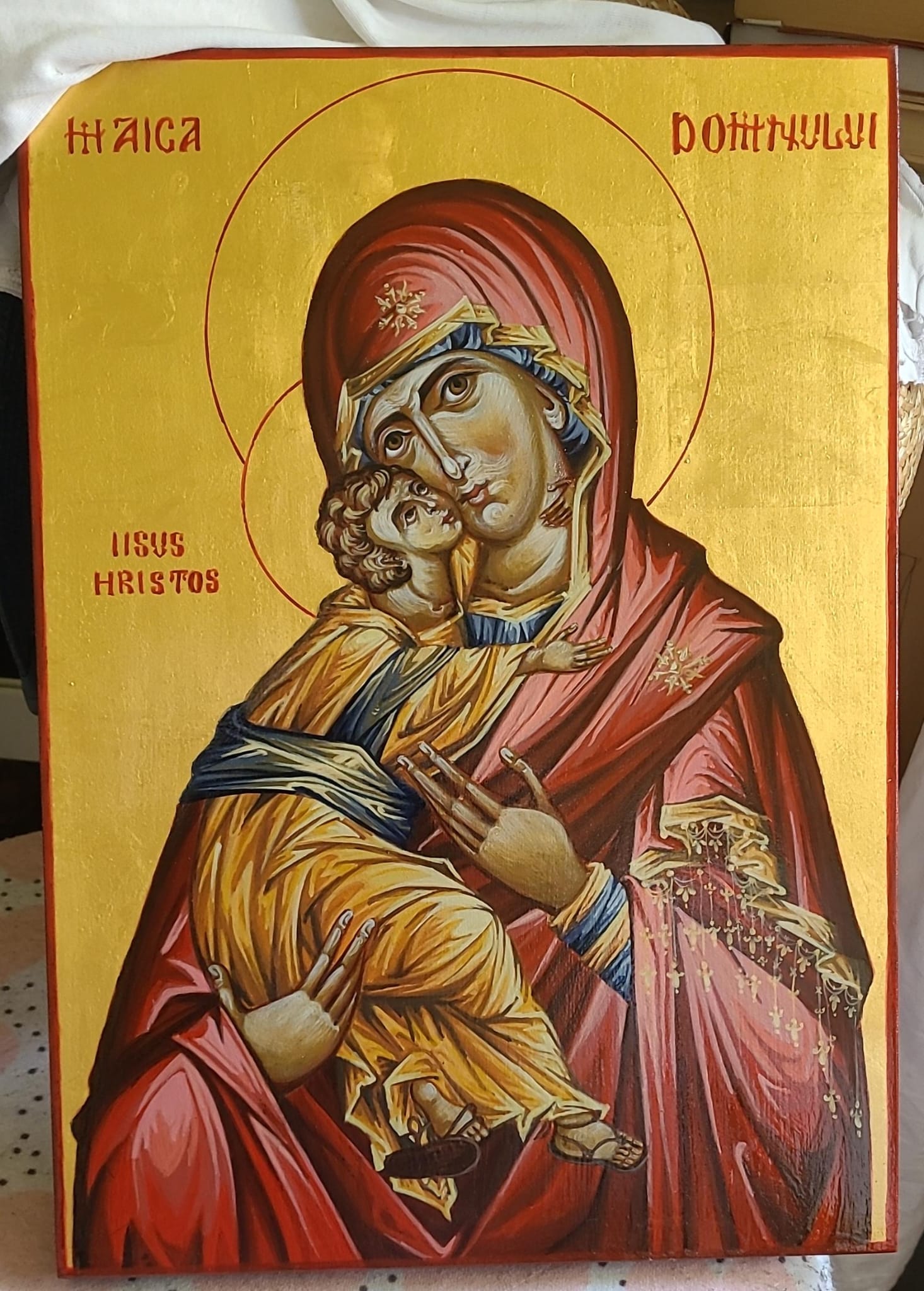 De altfel,  aproape fiecare element care întregește povestea a ceea a fost gândit să fie dăruit acelora care vor veni la acest eveniment îndrăznesc să spun că este un fel de pledoarie pentru autentic, pentru valoare, pentru rigoare și, deloc în ultimul rând, pentru cunoaștere și  educație. Și voi spune, chiar de la început, că fiecare dintre cele douăzeci de icoane ce vor fi expuse și toate laolaltă nu sunt dintre cele  ce pot fi găsite  prin târguri și oboare , la standuri și în magazine de decorațiuni. Ci, realizate special  pentru această expoziție,  acestea sunt lucrate  în stilul tradițional al icoanelor ortodoxe  bizantine, cu materiale  naturale, pigmenți, emulsie de ou cu vin etc,  toate etapele procesului  respectând  canoanele iconografice și o tehnică specifică de pictură.  Avocată  de profesie, Mariana Pălan s-a apropiat, de mai bine de zece ani,   de scrierea  icoanelor ortodoxe bizantine, respectând adevăratul înțeles al  cuvântului iconografie care,  provenit din limba greacă,  armonizează  tălmăcirea  imaginii și a lucrării de  a scrie. De aceea, vorbind despre icoanele sale, nici nu spune că le-a pictat , ci că le-a scris !