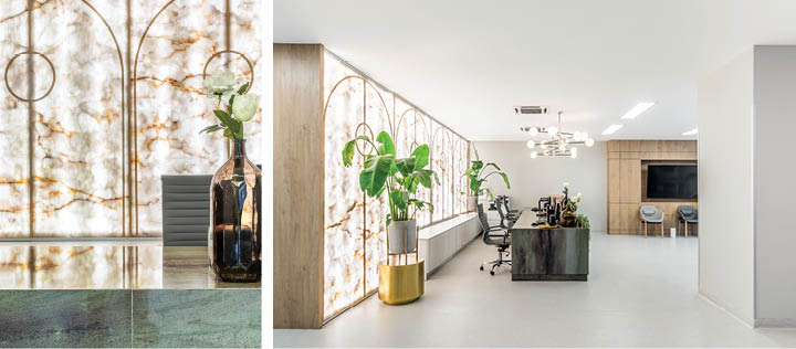 Iluminat din spate, onixul devine o operă de artă în sine. Fiecare placă este irepetabilă, cu linii și texturi care povestesc despre transformările geologice petrecute de-a lungul mileniilor. În acest fel, fiecare proiect devine unic, iar fiecare detaliu capătă profundime și emoție vizuală.