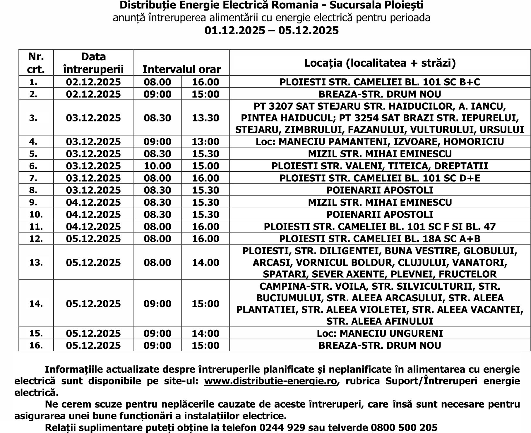 Acasă Actualitate ANUNȚ DISTRIBUȚIE ENERGIE ELECTRICĂ ROMÂNIA ActualitateSocial ANUNȚ DISTRIBUȚIE ENERGIE ELECTRICĂ ROMÂNIA De către Ziarul PRAHOVA - noiembrie 21, 2025 38 (P) ARTICOLE SIMILAREDE LA ACELAȘI AUTOR Actualitate „Masa verde“ e bogată Actualitate Şeful CNAS: 30% din cheltuielile din sănătate sunt asigurate, în momentul de faţă, de către pacient Actualitate Ministerul Educaţiei a pus în consultare publică un proiect privind limitarea temelor Urmăreşte-ne0FaniÎmi place Ultimele ştiri ANUNȚ DISTRIBUȚIE ENERGIE ELECTRICĂ ROMÂNIA noiembrie 21, 2025 DN1 se închide temporar! noiembrie 21, 2025 „Masa verde“ e bogată noiembrie 21, 2025 Cine are noroc – are! Cine n-are, n-are… noiembrie 21, 2025 Încărcați mai multe