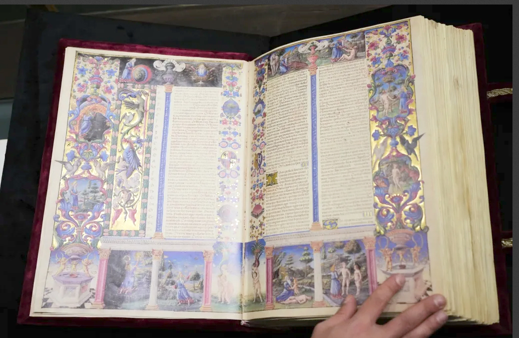 Rar văzut în public, manuscrisul ”Bibliei Mona Lisa” în două volume este acum expus la Roma, ca parte a celebrărilor de Anul Sfânt al Vaticanului, o tradiție care are loc o dată la un sfert de secol și care atrage zeci de milioane de pelerini la Roma.