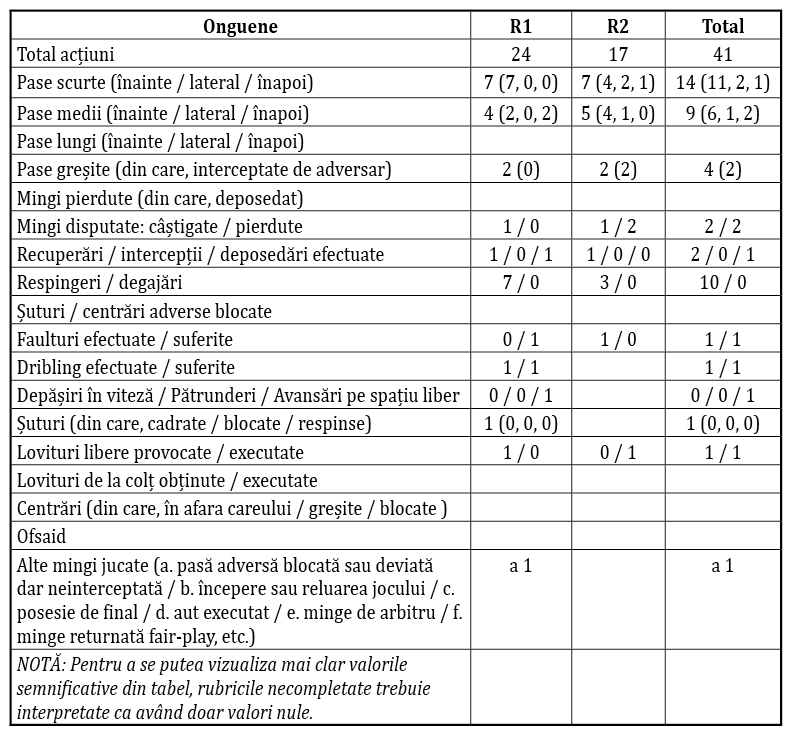 Prestația lu Onguene nu trebuie judecată doar prin prisma celor expuse până acum. Este de amintit și contribuția sa defensivă prin cele ce au ieșit un pic în evidență, dincolo de limita normalului. El a dovedit că are intuiția jocului, blocând împlinirea unui „un-doi” gălățean, urmată de o deposedare asupra lui Holz, acțiune în care și-a folosit foarte bine forța (min. 26). Ca să nu mai vorbim de blocajul făcut asupra lui Pedro Nuno într-un moment în care totul se putea nărui într-o clipă (min. 90+2). Chiar și avertismentul primit a venit după o acțiune – deposedare corectă ni s-a părut nouă, din tribună, nu fault – în care Onguene acoperise bine poziția avansată pe care a avut-o Roche (min. 85). Avertismentul i-a fost acordat mai degrabă pentru proteste.