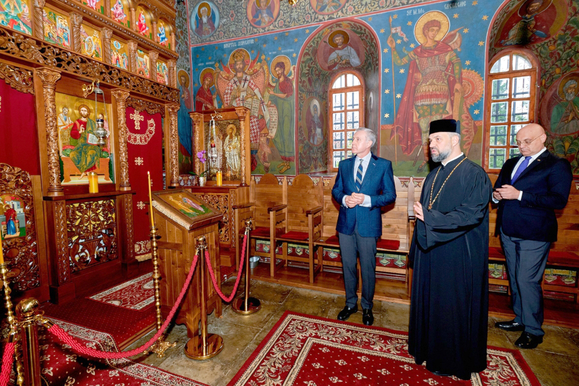 Programul a început la Biserica Domnească „Sfinții Apostoli Petru și Pavel”, cel mai vechi monument arhitectural al orașului, ridicat în secolul al XVII-lea. La sosire, Principele Radu a fost întâmpinat cu pâine și sare de un grup de copii, printre care s-au aflat și copiii preotului paroh Ioan Augustin Pîrlea. În lăcașul de cult a avut loc o scurtă rugăciune, urmată de vizitarea grădiniței din curtea parohiei, unde Alteța Sa Regală s-a întâlnit cu cei mici și cu educatoarele lor.