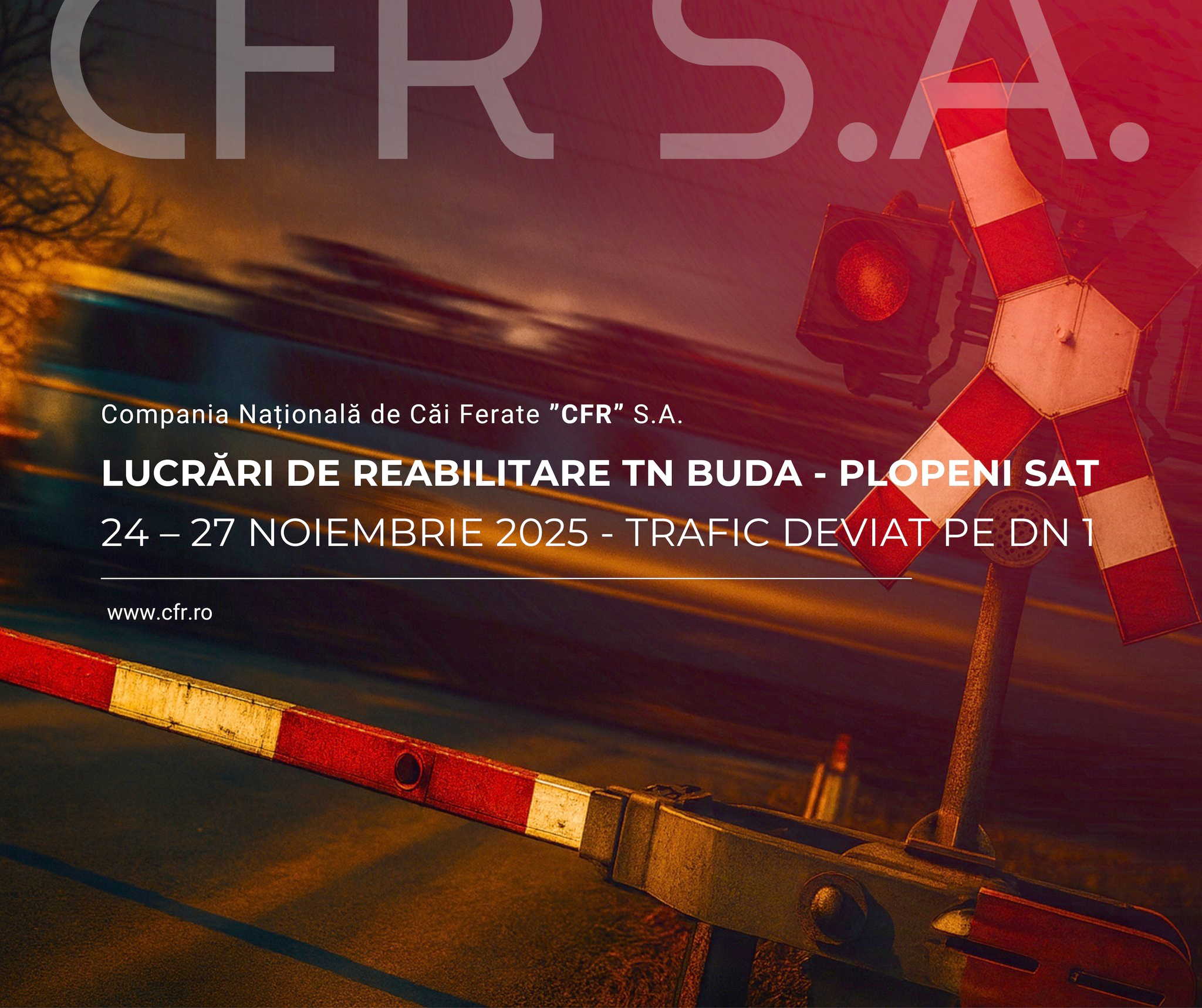 Totodată, și Compania Națională de Căi Ferate „CFR” S.A. a anunțat că în perioada 24 noiembrie 2025, ora 10:00 – 27 noiembrie 2025, ora 12:00, execută lucrări de reabilitare la trecerea la nivel situată pe linia CF 311 Buda – Plopeni Sat, la km 2+390, în zona de intersectare cu DN 1. ”Intervențiile se desfășoară pe raza Sucursalei Regionale București, în regie proprie. Lucrările includ demontarea trecerii la nivel, completarea prismei de balast cu piatră spartă nouă, efectuarea burajului mecanizat pentru corectarea nivelului căii, montarea dalelor de beton și refacerea prin asfaltare a carosabilului de racord dintre drumul național și calea ferată. Aceste operațiuni sunt necesare pentru menținerea siguranței și funcționalității infrastructurii feroviare. Pe durata intervențiilor, circulația feroviară se închide pe intervalul km 2+320 – km 2+440, iar călătorii sunt transbordați între stațiile Buda și Plopeni Sat, conform programului stabilit de operatorul de transport feroviar. Circulația rutieră se închide pe DN 1, în zona km 69+925, iar traficul se deviază pe rute alternative stabilite de autoritățile rutiere. Aceste măsuri asigură desfășurarea lucrărilor în condiții de siguranță pentru personal și participanții la trafic. Rutele ocolitoare pentru autovehicule cu masa maximă tehnic admisibilă de până la 3,5 t sunt: DJ 155 – DJ 102 – DJ 100F – DJ 215 și DN 72 – DJ 144 – DJ 720, iar pentru cele cu masa maximă tehnic admisibilă mai mare de 3,5 t: DN 1A – Vălenii de Munte – Cheia – Săcele – DN 1”, au precizat reprezentanții Companiei de Căi Ferate ”CFR” S.A.