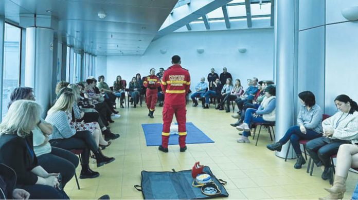 „În cadrul întâlnirii, colegii noștri au prezentat pașii esențiali pe care orice persoană trebuie să îi urmeze atunci când cineva din jur se află în dificultate, punând accent pe importanța calmului, a evaluării rapide a situației și a apelării serviciilor de urgență. Participanții au primit informații clare și practice despre modul de utilizare a defibrilatoarelor semiautomate, principiile de funcționare ale acestora, precum și despre rolul lor vital în cazurile de stop cardiac. A fost subliniat faptul că aceste echipamente sunt sigure, ușor de folosit și pot face diferența dintre viață și moarte până la sosirea echipajelor de prim ajutor.
