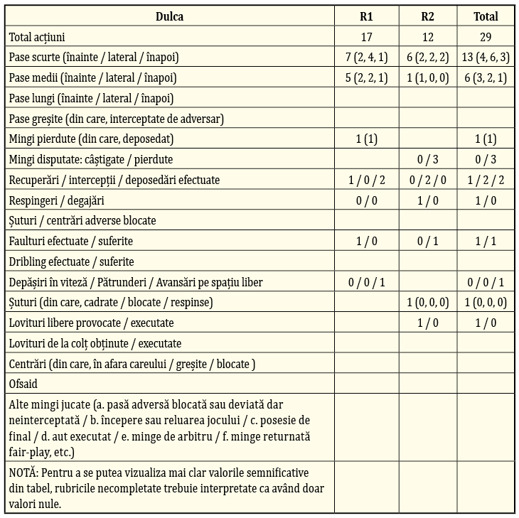 O vorbă legată de o cifră din tabel, una care poate stârni- și chiar stârnește- nedumerire. Două dintre dueluri au fost pierdute pentru că Dulca nu a pus piciorul mai zdravăn la minge, accidentarea pândind la cotitură, iar al treilea a fost, surprinzător, unul aerian pierdut în fața lui El Sawy la un corner bătut de Bic.