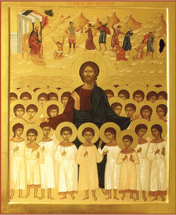 Mergând cei trei magi în Betleem să se închine lui Hristos, nu s-au mai întors la Ierusalim ca să-l anunțe pe Irod unde se află dumnezeiescul Prunc. La porunca îngerului aceștia s-au întors în țara lor urmând altă cale. Văzând că a fost înșelat de magi, Irod s-a mâniat și a poruncit uciderea tuturor pruncilor de parte bărbătească, din tot Beleemul Iudeii și din împrejurimi, gândind că astfel va ucide pe noul împărat. S-a împlinit astfel prorocia: „Glas se aude în Rama, bocet și plângere amară. Rahila își plânge copiii (Ieremia 31: 15; Matei 2: 18). Irod credea că dacă îi va ucide pe toți pruncii, Îl va ucide și pe Împăratul Hristos, ignorând însă, că Împărăția Mântuitorului nu este din lumea aceasta.