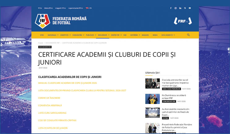 FRF aduce la cunoștință că, începând cu februarie 2026, va începe o nouă ediție a procesului de Clasificare pentru toate cluburile care doresc să obțină certificatul de clasificare, valabil pentru următorii doi ani.