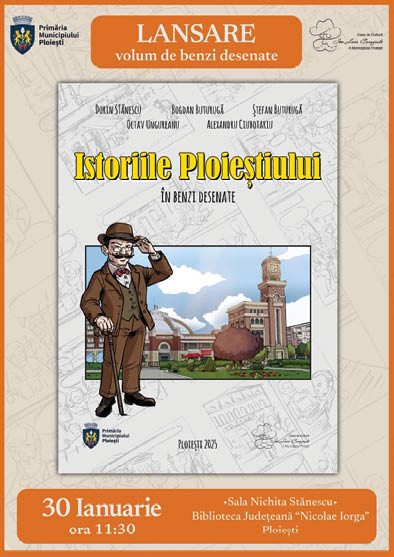 La sfârșitul acestei săptămâni, în atenția ploieștenilor va fi adus un volum cu totul aparte față de cele care au inclus în paginile lor fragmente din istoria orașului în care s-au născut ori trăiesc. Este vorba despre ”Istoriile Ploieștiului în benzi desenate”, volum care va fi lansat de Casa de Cultură „Ion Luca Caragiale” Ploiești, cu sprijinul Primăriei Ploiești, vineri, 30 ianuarie 2026, la ora 11.30. Evenimentul va avea loc la Sala Nichita Stănescu a Bibliotecii Județene „Nicolae Iorga” din Ploiești, volumul fiind semnat de Dorin Stănescu, Bogdan Buturugă, Ștefan Buturugă, Octav Ungureanu și Alexandru Ciubotariu, autori care reunesc pasiunea pentru istorie, ilustrație și arta povestirii. Potrivit organizatorilor evenimentului, volumul propune o abordare originală și accesibilă a istoriei locale, îmbinând rigoarea documentării cu expresivitatea benzii desenate, într-un demers cultural dedicat publicului de toate vârstele. Astfel, prin ilustrații sugestive și narațiuni dinamice, cititorii sunt invitați să descopere episoade, personaje și momente definitorii din trecutul Ploieștiului, reinterpretate într-un format modern și atractiv. Lansarea volumului menționat va include și intervenții ale autorilor și ale organizatorilor, precum și un dialog cu publicul despre importanța noilor forme de promovare a patrimoniului cultural local.