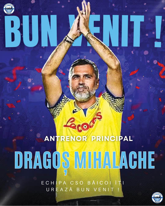 Formația din Liga 3 , CSO Băicoi a ajuns la un acord cu Dragoș Mihalache, care preia funcția de antrenor principal al echipei, începând cu startul în pregătiri, programat pe 13 ianuarie.