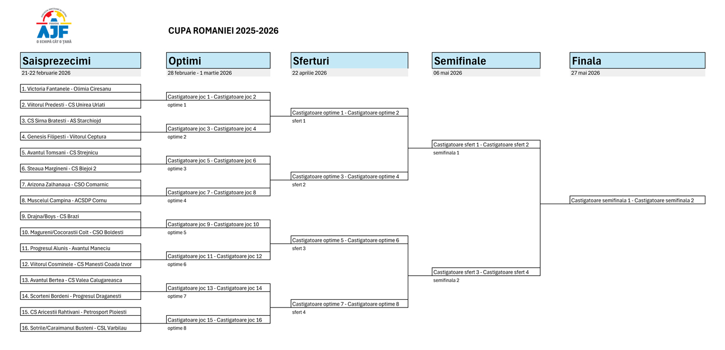 În urma tragerii la sorți, au fost stabilite, în premieră, atât meciurile din șaisprezecimile de finală, cât și culoarele competiționale până în finală, conform tabloului competițional oficial, astfel ca fiecare echipă știe «ce o așteaptă» în drumul spre trofeu.