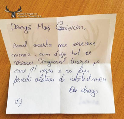 Iar de data aceasta, „spre deosebire de anii anteriori – spun reprezentanţii muzeului – conţinutul acestora ne-a surprins și ne-a emoționat, sperând totodată că Moșul a îndeplinit toate dorințele! Mai ales că, de data aceasta, cele mai multe mesaje nu au fost despre lucruri materiale, ci despre ceva mult mai valoros, respectiv linişte, pace, iubire şi înţelegere. Ne bucurăm că muzeul a fost un loc unde aceste gânduri frumoase au prins glas și vă mulțumim tuturor celor care au ales să împărtășească astfel de mesaje, iar aceste dorinţe să fie păstrate şi în timpul anului”.