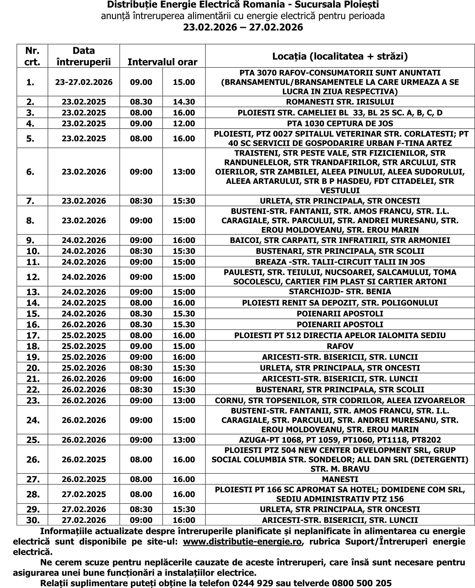 Acasă Actualitate ANUNȚ DISTRIBUȚIE ENERGIE ELECTRICĂ ROMÂNIA ActualitateSocial ANUNȚ DISTRIBUȚIE ENERGIE ELECTRICĂ ROMÂNIA De către Ziarul PRAHOVA - februarie 13, 2026 119 (P) ARTICOLE SIMILAREDE LA ACELAȘI AUTOR Actualitate Donald Trump ar putea participa la parada de Ziua Victoriei din Rusia Actualitate Speranţe pentru viitor Actualitate Deplasare la Tg. Mureş pentru CSM Urmăreşte-ne0FaniÎmi place Ultimele ştiri ANUNȚ DISTRIBUȚIE ENERGIE ELECTRICĂ ROMÂNIA februarie 13, 2026 Donald Trump ar putea participa la parada de Ziua Victoriei din... februarie 13, 2026 Sute de persoane au protestat în faţa Primăriei Ploieşti! februarie 13, 2026 Anecdote februarie 13, 2026 Încărcați mai multe