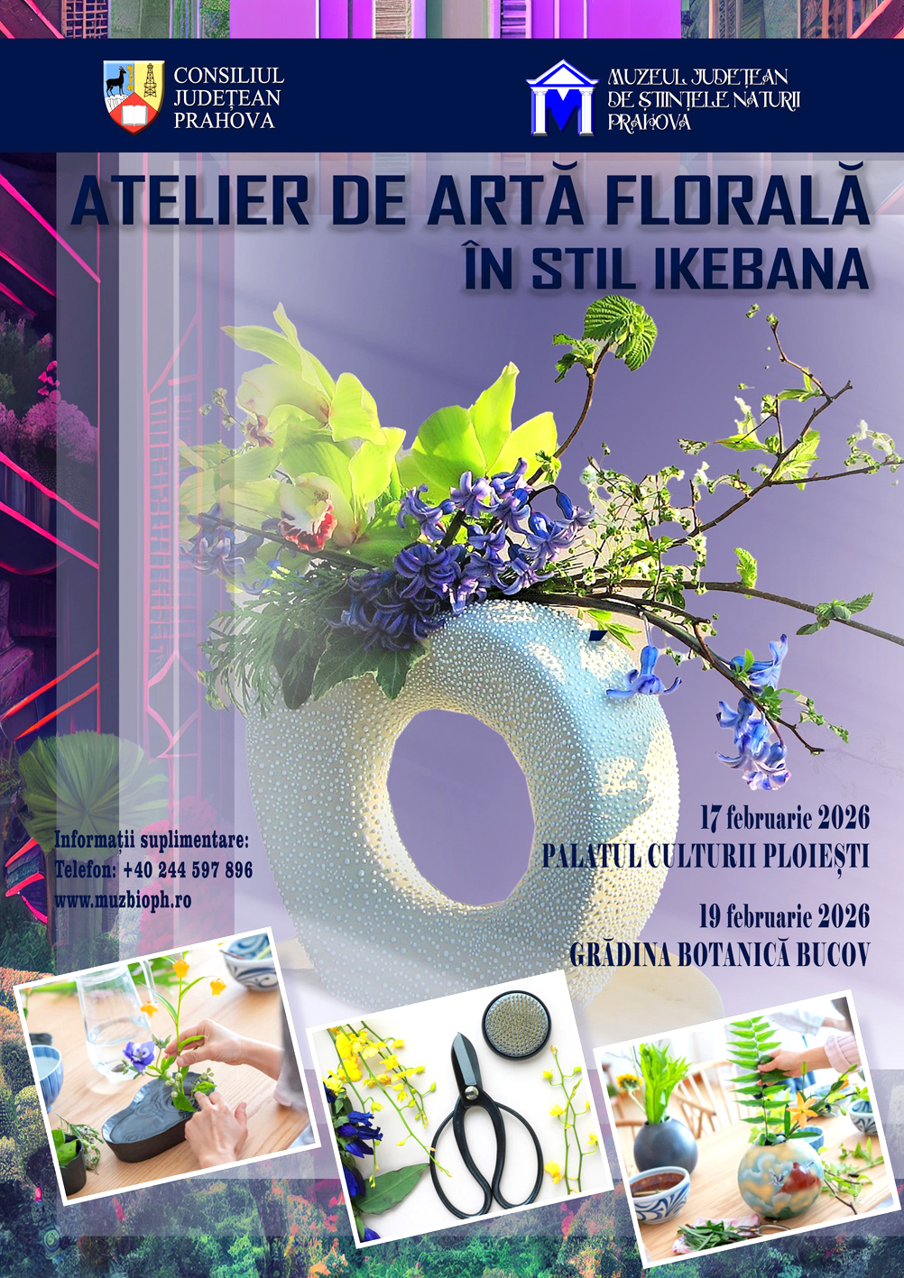 Muzeul Județean de Științele Naturii Prahova și una dintre secțiile sale, Grădina Botanică Bucov, au făcut public faptul că vin în întâmpinarea pasionaților de artă florală cu două ateliere în stil Ikebana. Conform reprezentanților muzeului menționat, cei care vor participa la atelierele menționate vor învăța principiile de bază care definesc spiritul Ikebanei, diferența dintre arta florală occidentală și cea orientală, vor realiza aranjamente florale pe care, apoi, le vor putea lua și acasă. Primul atelier va avea loc pe data de 17 februarie a.c., începând cu ora 10.00, la sediul Muzeului Județean de Științele Naturii Prahova din Palatul Culturii, str. Slt. Erou Călin Cătălin nr.1, iar cel de-al doilea, pe data de 19 februarie a.c., la Grădina Botanică Bucov, de la ora 10.30, în ambele cazuri durata fiind de aproximativ două ore. Numărul maxim de participanți este de 10 persoane la un atelier, iar vârsta celor care doresc să participe trebuie să fie de peste 14 ani. Taxa de participare este de 50 lei/persoană și se va achita la sediul muzeului, reprezentanții acestuia menționând că în cazul în care nu se întrunește numărul maxim de participanți, atelierul se va reprograma la o dată ulterioară. Înscrierile se pot face la numărul de telefon 0244 597 896 sau email: office@muzbioph.ro, până pe data de 11 februarie 2026.