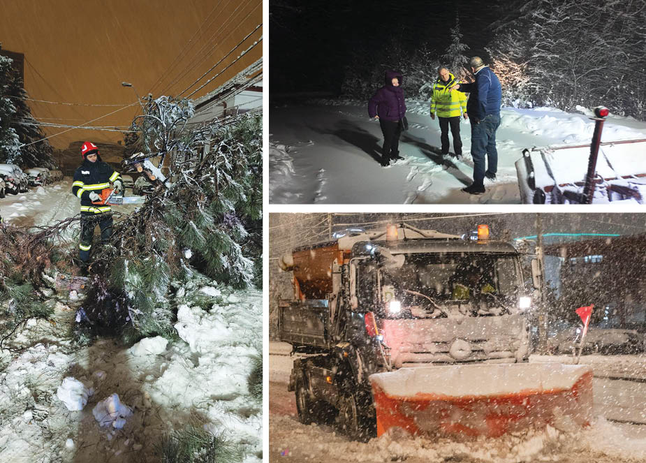 ”Președintele Consiliului Județean Prahova, Virgiliu Nanu, vicepreședintele Mario Soare și administratorul public Emil Drăgănescu s-au aflat în teren, pe fiecare dintre loturile unde operează cele trei firme de deszăpezire, pentru a menține legătura directă cu operatorii și pentru a urmări modul de intervenție în timp real. Se acționează pe toate fronturile, cu utilaje și material antiderapant, însă sunt numeroase localități afectate, iar intervențiile se desfășoară etapizat, în funcție de gravitatea situației din fiecare zonă. Există drumuri cu circulație îngreunată, sectoare unde s-au înregistrat blocaje și autovehicule înzăpezite, precum și situații punctuale generate de lipsa energiei electrice. Toate sunt gestionate, pe rând”, au informat, ieri dimineață, reprezentanții CJ Prahova.