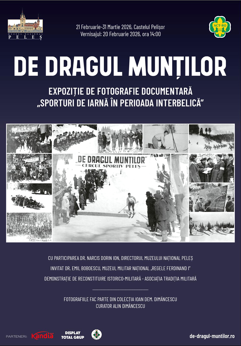 Muzeul Național Peleș, în parteneriat cu Asociația Cercetașilor Tradiționali, va deschide vineri, 20 februarie a.c., la ora 14:00, în Holul de Onoare al Castelului Pelișor, expoziția temporară de fotografie documentară cu titlul ”De Dragul Munților”. Potrivit organizatorilor, expoziția menționată reprezintă o inițiativă de restituire a unor momente din istoria mișcării sportive a anilor ’20-’40, la al cărei succes au contribuit decisiv vânătorii de munte, direct sau prin corpul ofițeresc implicat în dezvoltarea structurilor sportive civile. ”Fotografiile expuse fac parte din colecția lui Ioan Dem. Dimăncescu (1898-1951). Venit din rândurile cercetășiei, mișcare pe care, alături de fratele său, Dimitrie, a înființat-o în România anului 1913, Ioan Dem. Dimăncescu a fost ofițer veteran al Primului Război Mondial, participând la campaniile din Moldova, Basarabia și Ungaria. În anul 1919 a fost transferat la Regimentul Vânători de Munte, acesta fiind punctul 0 de la care începe să se deruleze ilustrația acestei expoziții”, se menționează într-un comunicat referitor la organizarea expoziției menționate. Așa cum s-a mai menționat, unele dintre fotografii sunt mai vechi de 100 de ani, care au fost catalogate în albume chiar de către Ioan Dem. Dimăncescu, curatorul expoziției fiind un nepot al acestuia, Alin Dimăncescu. Unul dintre invitații prezenți la acest eveniment organizat la Castelul Pelișor va fi dr. Emil Boboescu, de la „Muzeul Militar Național Regele Ferdinand I”, iar membrii Asociației ,,Tradiția Militară”, costumați în uniforme de epocă ale vânătorilor de munte, în cadrul deschiderii expoziției, vor face o demonstrație de reconstituire istorico-militară.