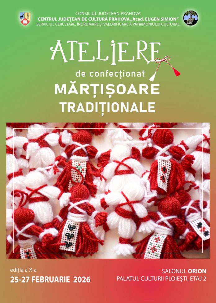 Precizând că în acest caz este vorba despre mărțișoare confecționate în mod tradițional, reprezentanții instituției au menționat: ”Ajuns la ediția a X-a, evenimentul nostru dedicat mărțișorului tradițional este o invitație deschisă pentru toți cei care doresc să descopere simbolistica firelor alb-roșii și să realizeze, cu propriile mâini, mici simboluri ale renașterii naturii. Îi așteptăm cu drag pe toți cei care vor să ducă povestea mărțișorului mai departe, în perioada: 25 – 27 februarie 2026, la Palatul Culturii Ploiești, Etaj 2, Salonul ORION, la Centrul Județean de Cultură Prahova „Acad. Eugen Simion”.
