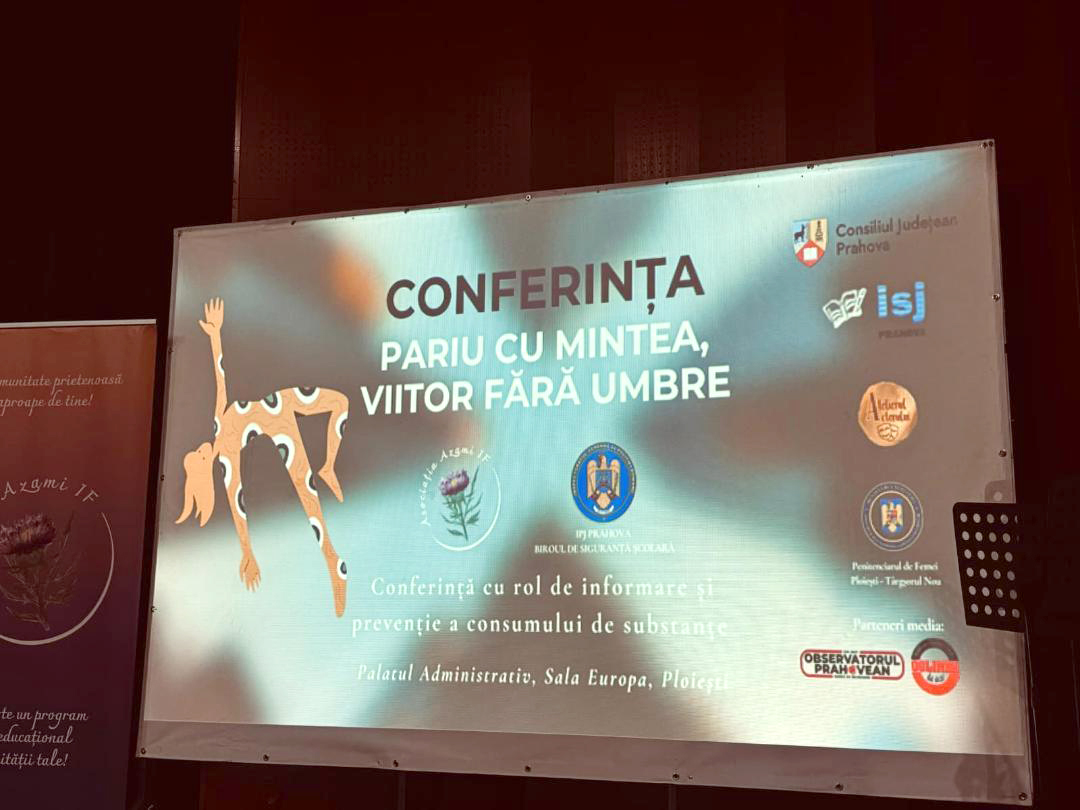 Sala „Europa” din cadrul Palatului Administrativ din Ploieşti a găzduit, la sfârşitul săptămânii trecute, conferinţa „Pariu cu mintea, un viitor fără umbre”, eveniment dedicat prevenirii consumului de substanțe psihoactive în rândul tinerilor. Activitatea a fost derulată prin Biroul Siguranță Școlară și Brigada de Combatere a Criminalității Organizate Ploiești, în parteneriat cu Penitenciarul Târgșoru Vechi, Agenția Națională Împotriva Traficului de Persoane, Asociația AZAMI Training și Inspectoratul Școlar Județean, cu sprijinul Consiliului Județean Prahova. Potrivit unei informări a IPJ Prahova, „Conferința a debutat cu un moment susținut de Atelierul Actorului Câmpina, în care doi copii au intrat în rolul unui tânăr consumator și traficant de droguri, exprimând cu voce tare gândurile, frământările și iluziile care pot apărea în mintea unui adolescent aflat în fața unei astfel de alegeri.