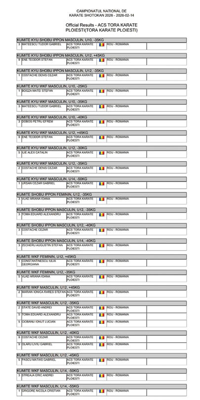 Clubul sportiv TORA Karate Ploiești a participat, în cele două zile de concurs, cu 20 de sportivi, care au luat startul la probele de „Kumite”, „WKF” și „Kumite shobu ippon”.