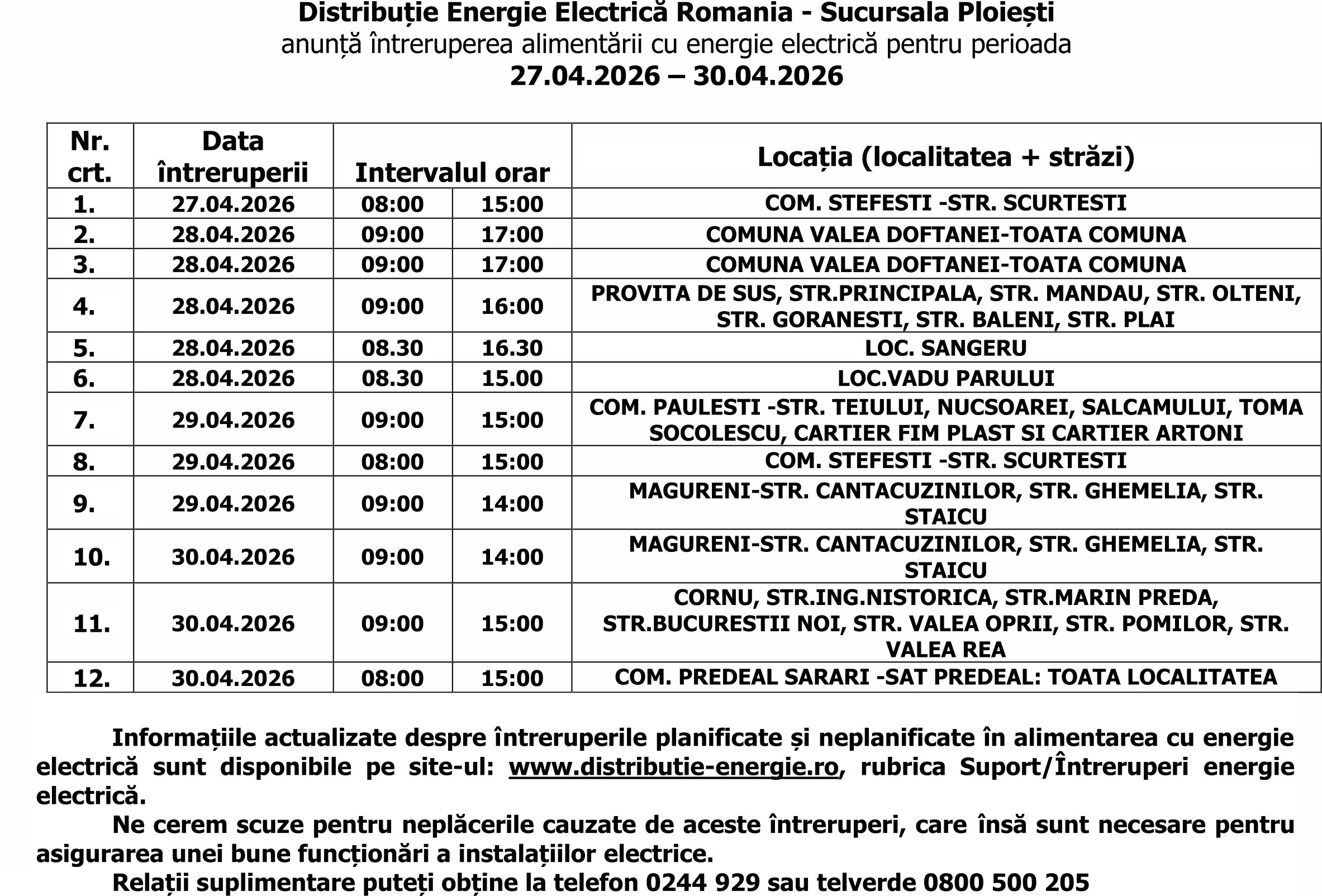 Acasă Actualitate ANUNȚ DISTRIBUȚIE ENERGIE ELECTRICĂ ROMÂNIA ActualitateSocial ANUNȚ DISTRIBUȚIE ENERGIE ELECTRICĂ ROMÂNIA De către Ziarul PRAHOVA - aprilie 17, 2026 114 (P) ARTICOLE SIMILAREDE LA ACELAȘI AUTOR Actualitate Se propune ca ţigările electronice, vape-urile şi dispozitivele de încălzit tutun să fie interzise în toate spaţiile publice închise Actualitate Atenţie la şantajul online prin care sunteţi acuzat de… „pornografie infantilă“! Actualitate CSM – buni „pe judeţ“ doar la juniori Urmăreşte-ne0FaniÎmi place Ultimele ştiri ANUNȚ DISTRIBUȚIE ENERGIE ELECTRICĂ ROMÂNIA aprilie 17, 2026 „Intervenții brutale, total neadecvate”, în zona zero a Ploieștiului! aprilie 17, 2026 Se propune ca ţigările electronice, vape-urile şi dispozitivele de încălzit tutun... aprilie 17, 2026 Atenţie la şantajul online prin care sunteţi acuzat de… „pornografie infantilă“! aprilie 17, 2026 Încărcați mai multe