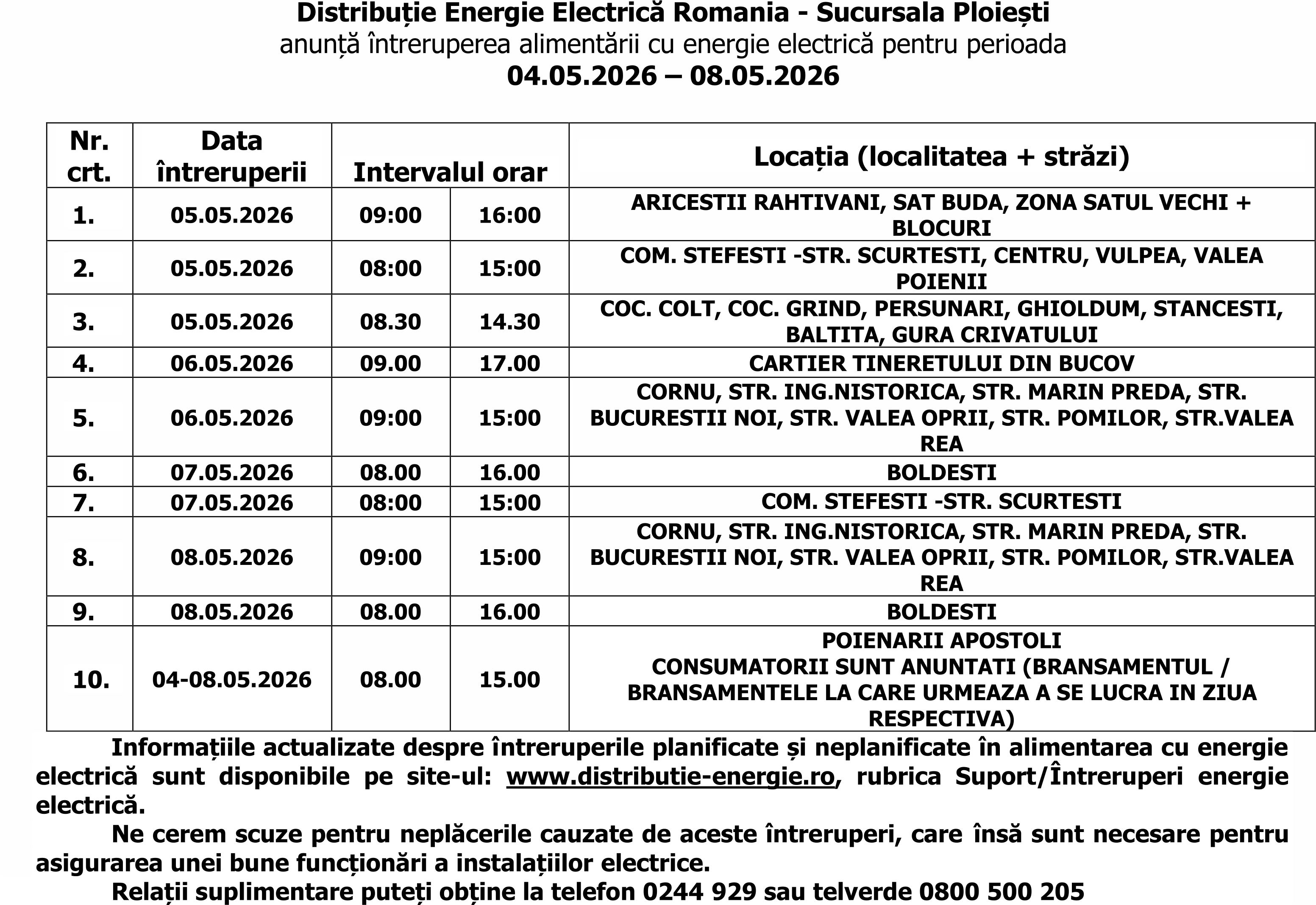 Acasă Actualitate ANUNȚ DISTRIBUȚIE ENERGIE ELECTRICĂ ROMÂNIA ActualitateSocial ANUNȚ DISTRIBUȚIE ENERGIE ELECTRICĂ ROMÂNIA De către Ziarul PRAHOVA - aprilie 24, 2026 113 (P) ARTICOLE SIMILAREDE LA ACELAȘI AUTOR Actualitate Revoluția din segmentul mid-range al telefoanelor inteligente Actualitate Petrolişti „pentru un Ploieşti mai curat” Actualitate Modificări în fotbalul feminin Urmăreşte-ne0FaniÎmi place Ultimele ştiri Revoluția din segmentul mid-range al telefoanelor inteligente aprilie 24, 2026 ANUNȚ DISTRIBUȚIE ENERGIE ELECTRICĂ ROMÂNIA aprilie 24, 2026 Comuna prahoveană Gura Vadului, prima stațiune oenoturistică din România aprilie 24, 2026 Petrolişti „pentru un Ploieşti mai curat” aprilie 24, 2026 Încărcați mai multe