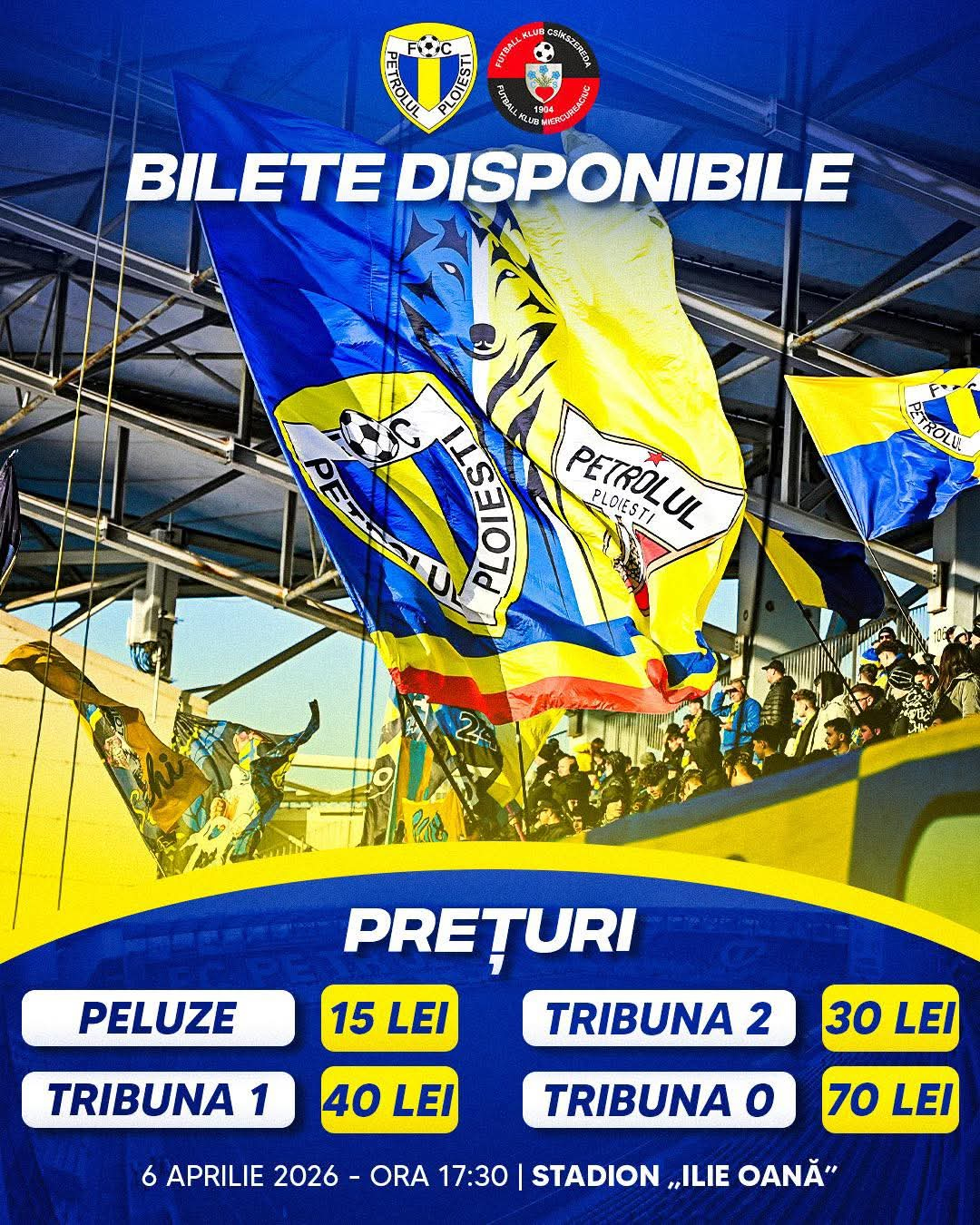 Biletele pentru următorul meci programat pe “Ilie Oană” sunt disponibile deja, partida de săptămâna viitoare fiind una extrem de importantă! Petrolul Ploiești întâlnește FK Csikszereda Miercurea Ciuc în etapa 3 din Play-Out-ul Superligii României, iar duelul este programat luni, 6 aprilie, de la ora 17:30.