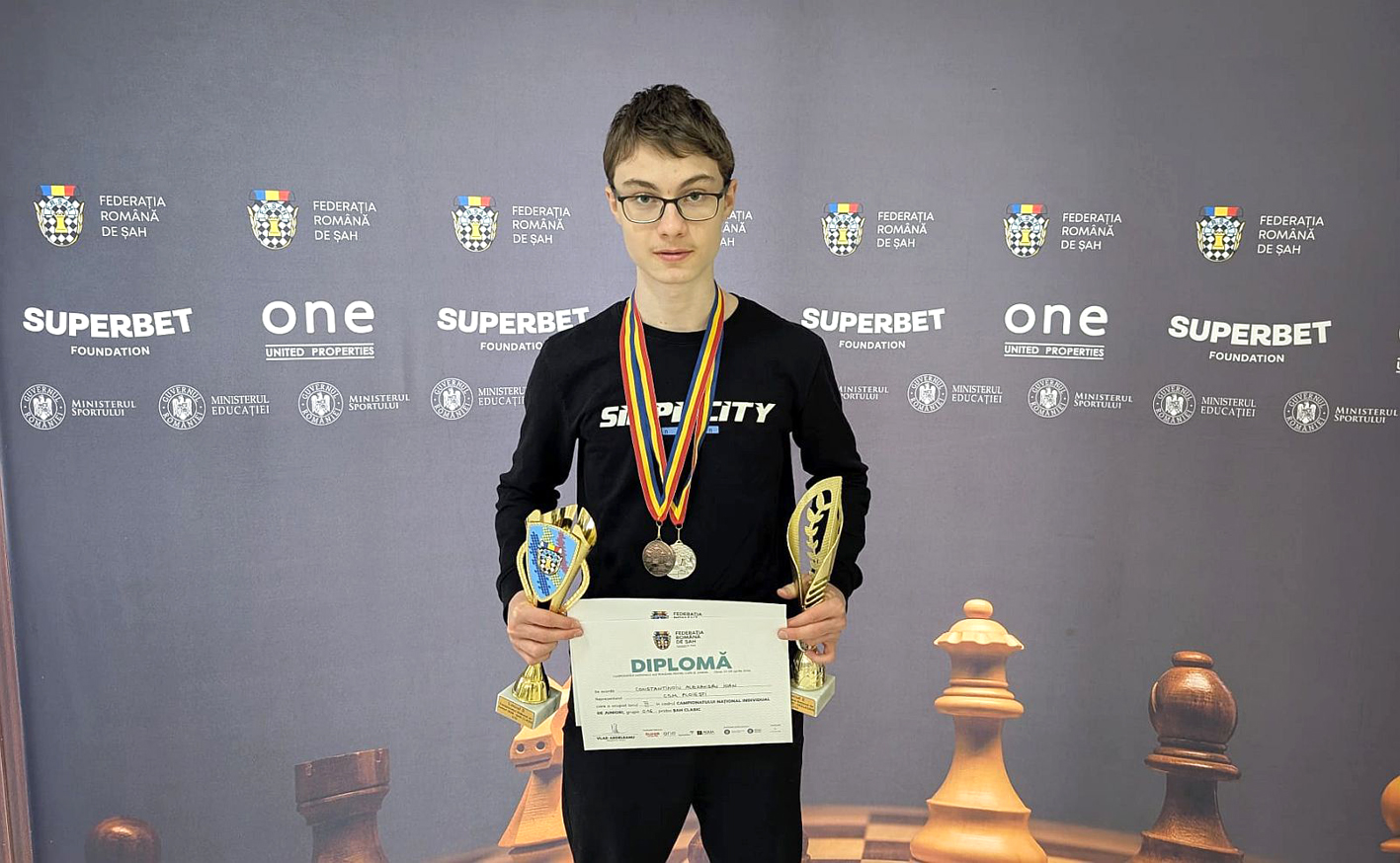 Alexandru Constantinoiu a devenit vicecampion naţional în concursul de dezlegări la categoria de vârstă „U16”, aceeaşi la care a obţinut medalia de bronz în competiţia de şah clasic.