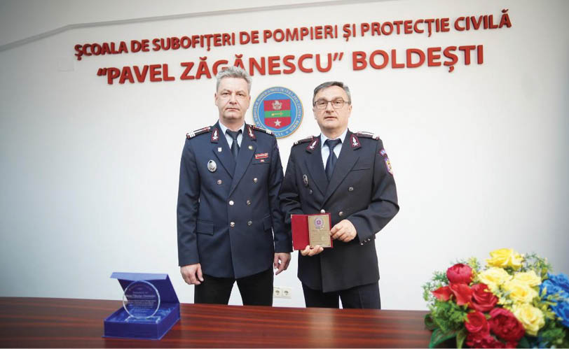 „După 22 de ani de activitate în cadrul școlii, colegul nostru (n.n. – în foto dreapta, alături de comandantul instituţiei, col. Dan Ionuţ Enescu) lasă în urmă o frumoasă carieră dedicată meseriei de salvator şi formator în domeniul descarcerării şi al primului ajutor calificat, formând ani la rând caractere puternice si pregătite oricând să salveze viața semenilor.