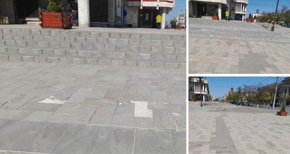 De altfel, dată fiind calitatea foarte slabă a lucrărilor efectuate și care nu se încadrează cu zona zero a orașului, mai ales că unele dintre plăcile de gresie nou apărute, de toate culorile, nici nu au rezistat prea mult timp, o parte dintre ele fiind deja crăpate și desprinse – așa cum se poate vedea și din imaginile alăturate, surprinse de noi ieri la fața locului- un răspuns similar, în acest caz, a fost solicitat și de către ziarul Prahova arhitectului șef al municipiului, Roxana Pandele. Aceasta ne-a declarat că a primit sesizarea din partea Direcției Județene pentru Cultură Prahova, o echipă din cadrul Direcției Generale de Urbanism a Primăriei Ploiești urmând să verifice care este situația în teren în momentul de față. Dacă lucrările deja efectuate au avut sau nu autorizație, dar mai ales cine le-a realizat – Direcția Tehnică a Primăriei Ploiești sau firma Winmarkt, arhitectul șef al municipiului nu ne-a putut însă preciza, susținând că acest lucru se va putea cunoaște numai după o serie de verificări, ale căror concluzii ne vor fi comunicate zilele următoare. Totuși, având în vedere că este vorba despre zona centrală a orașului, despre faptul că avea cunoștință despre solicitarea Direcției amintite, nu putem să nu concluzionăm că răspunsul s-ar fi cuvenit să fie cunoscut deja la această oră, iar măsurile care se impun să fi fost deja stabilite, inclusiv în privința celor găsiți vinovați de o asemenea ”bătaie de joc”, cum ne-a fost semnalat la redacție, cu atât mai mult cu cât este vorba despre compartimente ale aceleiași instituții, plătite din bani publici să lucreze în interesul ploieștenilor trăitori într-un oraș care se pretinde european.