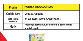 Broccoli cu pesticide peste limita legală, retras de la vânzare din...