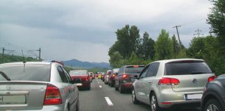 Coada de maşini pe DN1, pe Valea Prahovei, inclusiv la început...