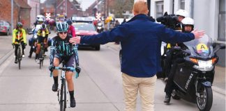 O ciclistă, obligată să se oprească după ce i-a ajuns din...